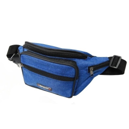 Modrá ledvinka - ledvinka v módním vzoru. Ledvinka vybavená mnoha kapsami pro uložení nejpotřebnějších předmětů. Díky své malé velikosti a pohodlnému zapínání se skvěle hodí na cestování. Ledvinka zapínaná na nastavitelný pásek s přezkou. Specifikace: 6 kapes uzavíratelných na zip barva: modrá džínová minimální obvod: 90 cm maximální obvod: 130 cm rozměry taštičky (bez pásku): 15x30x10 cm Množství ks. v kartonu: 100