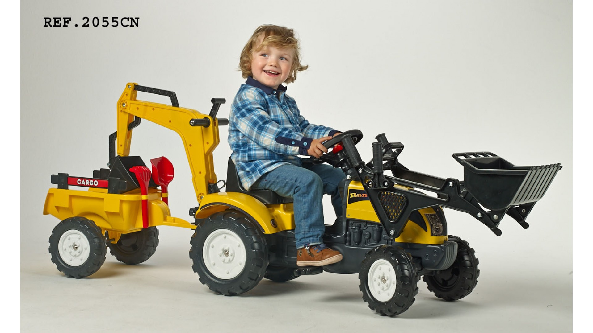 - Funkční klakson na volantu, odpojitelná vlečka, hrábě a lopatka do písku