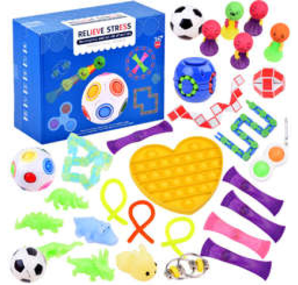Fidget Toys je 30 dílná sada hraček, pomůcek pro děti a dospělé. Celá krabice různých her, pomůcek na hraní, na zábavu, na odreagování, na zaměstnání rukou při nervozitě, na uklidnění, na uvolnění. Tato sada smyslových pomůcek nemá věkové omezení, bude fungovat pro batole během nudy, pro teenagera na zabavení myšlenek a pro dospělého na ruce během nervozity. Tyto typy hraček jsou vhodné také pro autistické děti nebo osoby s poruchami pozornosti, ADHD a OCD či vysokou mírou úzkosti ze stresu. Tyto pomůcky se vám budou hodit například při čekání na návštěvu zubaře, před stresující hodinou ve škole nebo během dlouhé nudné cesty. Aplikací lze nalézt nepřeberné množství. Například gadgety zaměstnají ruce dospělých, kteří se chtějí zbavit návyku kouření cigaret nebo kousání nehtů. V dnešní uspěchané a stresující době se vyplatí používat jakoukoli pomůcku, která nás může zbavit stresu.