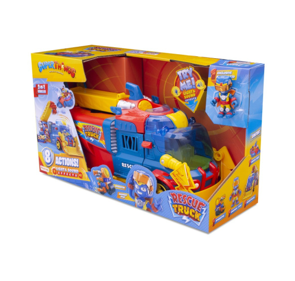 Figurka SuperThings S – Záchranářský kamion – Díky záchrannému vozidlu budou moci SuperThings a Kazoom Kids vyrazit na tísňové volání každého obyvatele města Kaboom. Exluzivní postavy – obsahuje 1 exkluzivní Kazoom Kid a 1 SuperThing.