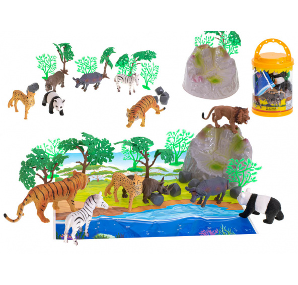 Jedinečná sada figurek zobrazujících 7 různých divokých zvířat přenese malé nadšence do přírody přímo do exotické země. Součástí balení je podložka, na které si můžete vytvořit fantastický model s dravci. Tato sada si jistě získá srdce vašeho dítěte a poskytne mu spoustu nekonečné zábavy. Vydejte se na kouzelnou cestu plnou nezapomenutelných zážitků zemí obřích a nebezpečných tvorů. Obdivujte tygra při lovu, zebru hasící žízeň v řece nebo pandu, která si spokojeně hraje pod stromy. Zvířata jsou nádherně detailní. Věrná reprodukce detailů potěší i ty nejnáročnější sběratele. Budou skvělým doplňkem vaší stávající sbírky nebo perfektní záminkou k založení sbírky