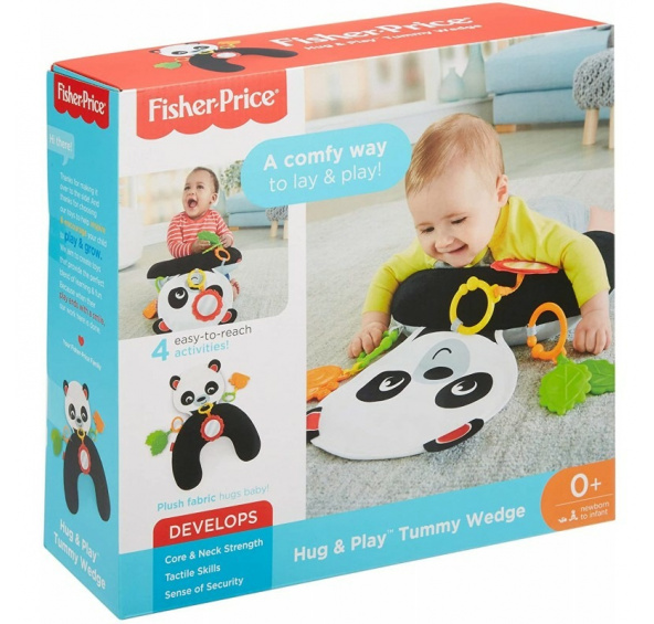 Fisher Price hrací podložka pod bříško Panda. Přátelský kamarád panda „obejme“ miminko když si hraje na bříšku. Podložka obsahuje zrcátko, kousát atp. Lze prát v pračce (s odstraněnými hračkami).