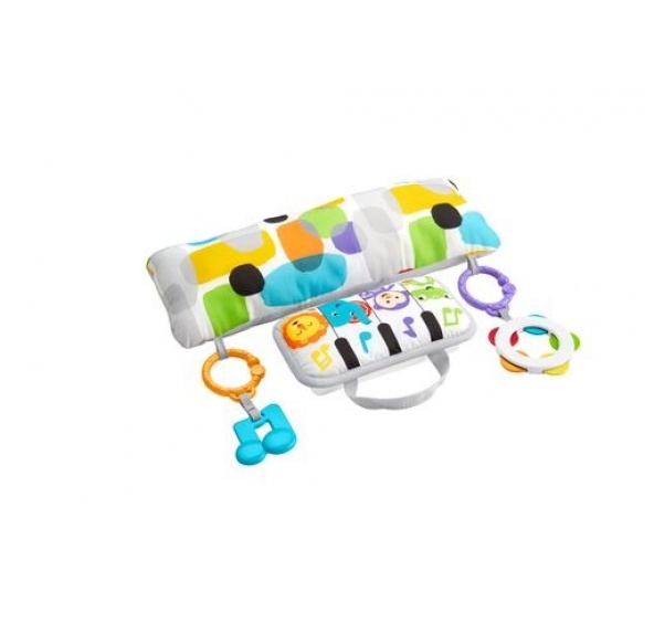 Hebký polštářek Fisher-Price®, který slouží jako opora pod bříško, je zároveň připojený k měkkému pianu. Světýlka a hudba poskytují rozptýlení, které zabaví děťátko pasoucí koníčky na hodně dlouho. Hračka nabízí 20 minut hudby a 3 různé režimy hry – 1. hudba, 2. zvuky zvířat a 3. piano. Pianko roste s děťátkem, které si jej po odpojení od polštářku může vzít kamkoliv s sebou, ať už doma nebo na cesty. Dvě odpojitelné hračky – kousátko notička a tamburína – zajistí zábavu navíc.