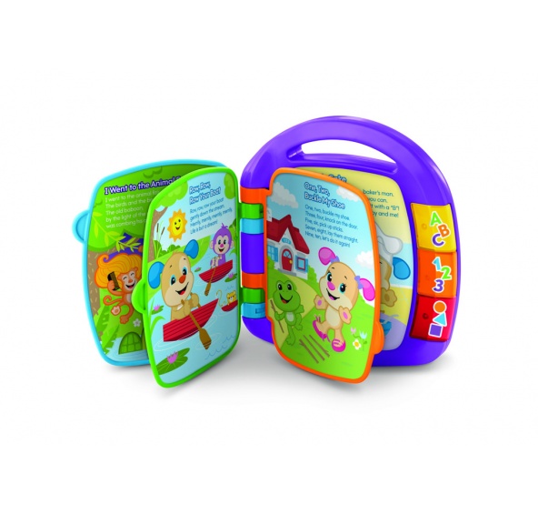 Otevřete svému děťátku svět zábavy a učení s hudební knížkou Učíme se říkanky z řady Směj se a Poznávej! Pouhým otočením stránky spustíte oblíbené dětské písničky a zároveň si můžete prohlížet barevné obrázky pejska a jeho sestřičky. Zatímco vy s vaším malým tanečníkem dobýváte parket v rytmu skvělé hudby, on se zároveň učí písmenka, počítání, učí se první slůvka, čísla, tvary a další důležité věci. Díky šikovné rukojeti můžete knížku vzít všude s sebou! Když děti stisknou svítící tlačítka ABC a 123, uslyší písmena a čísla odpovídající příslušné stránce. Díky tomu si čtení zamilují! Stisknutím svítícího tlačítka „Tvary a barvy“ děti spustí krátké věty, které jim pomůžou naučit se všechny různé barvy a tvary. Stránky, které se snadno otáčejí, pomůžou dětem rozvíjet jemnou motoriku. Hračka mluví česky.