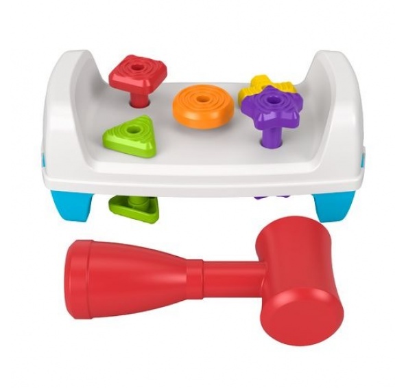 Zatloukání kolíků je s Fisher-Price® veliká zábava! Barevné kolíky zavedou děti do světa barev a tvarů. Otočte stoleček vzhůru nohama a zábava bude ještě větší. Aktivity navíc pomohou děťátku v rozvoji jeho jemné motoriky včetně koordinace pohybu očí a rukou a v jeho obratnosti. Set obsahuje pět barevných a unikátně tvarovaných kolíků a snadno uchopitelné kladívko. Hračka má dvě strany vhodné k zatloukání kolíků a klepání, kroucení a tahání kolíků zase ven. Set rozvíjí jemnou motoriku včetně koordinace pohybu očí a rukou a obratnosti. Hračka nevyžaduje pro provoz baterie.