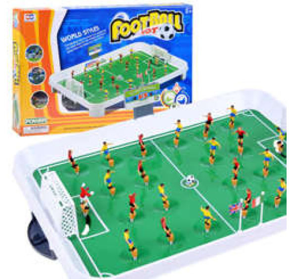 Jedná se o velkou sadu. Dva kompletní týmy po 11 hráčích. Brankář je aktivní a může být přesunut za účelem bránění branek. tato sada poskytne vzrušující zábavu pro dítě a pravděpodobně i pro tatínky. Hry se mohou zúčastnit nejméně 2 osoby. Pozváním většího počtu lidí lze uspořádat skutečný fotbalový turnaj, mistrovství Evropy nebo dokonce mistrovství světa.
