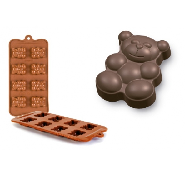Jedním naplněním reliéfů v této silikonové formě získáte hned osm čokoládových medvíďat, po kterých se za přítomnosti dětí jen zapráší, ani je nestačíte zabalit. Celková velikost formy je 10,5 x 21 centimetrů, figurky budou mít sílu přibližně 1 cm.