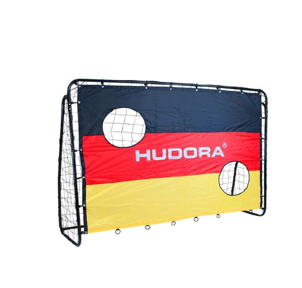 Kovová fotbalová branka s terčem, od německé firmy Hudora, určená pro rekreační použití a na trénink přesnosti střelby.