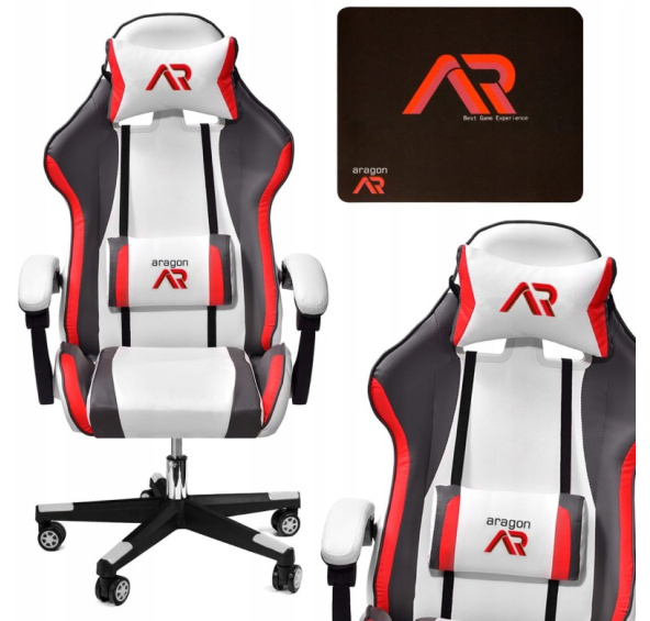 Profesionální křeslo ARAGON určené pro hráče, domácí a kancelářské použití, ergonomická konstrukce, maximální funkčnost, moderní design. Herní sedačky AR jsou určeny jak pro zkušené hráče počítačových her, tak pro uživatele, kteří ocení styl a estetiku vystavených modelů. Kombinují ergonomický tvar s maximální funkčností. Ideální pro hráče, místnosti pro mládež nebo kanceláře. Jejich promyšlená konstrukce eliminuje účinky únavy při dlouhodobém používání. Jsou vyrobeny z nejkvalitnějších materiálů a díky kbelíkovému designu a modernímu, elegantnímu stylu nabízejí maximální přizpůsobení pro hraní her a pohodlí při sezení. SEDADLO Sedadlo je vyrobeno z ekologické kůže a je vybaveno páčkou pro okamžité zvedání a spouštění. NASTAVENÍ SEDADLA Páčka pro snadné nastavení úhlu sklonu až do 160 stupňů, optimální poloha sezení pro běžné použití a hraní her a sklopení při relaxaci. PODROMENKY Konstrukce ve 2D s výškovým a otočným nastavením základen područek, které umožňují mladším i starším uživatelům křesla přizpůsobit si pohodlí DVĚ POLŠTÁŘE - HLAVOVÁ A BEDERNÍ OPĚRA Měkký a velkorysý polštářek opěrky hlavy a bederní opěrky, který ladí s celkovým designem křesla, je odnímatelný a čistitelný. KOLEČKA Dvoubarevná základna navržená v souladu s designem celé herní židle. robustní s maximální nosností 120 kg. Kolečka židle jsou potažena odolnou gumou, která nepoškrábe ani nepoškodí podlahu SYSTÉM TILT Sedadla s funkcí naklápění mají: možnost aretace opěradla ve zvolené poloze, nastavení výšky židle a hloubky sedáku. Součástí balení je podložka pod myš ZDARMA!