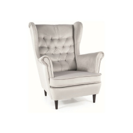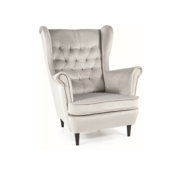 Křeslo, látka samet, barva: světle šedá Bluvel 03, dřevo, barva: wenge.