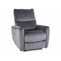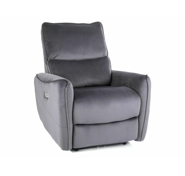Rozkládací křeslo, čalounění: sametová tkanina Bluvel, rám: kov, barva: 14 šedá / černá. Elektrické rozkládání, port USB.