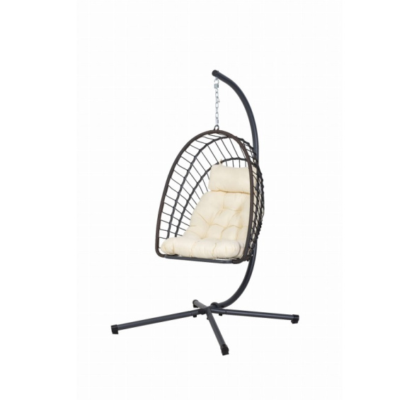 Výjimečně pohodlné, elegantní a moderní závěsné křeslo. K jeho výrobě byla použita vysoce kvalitní ocel, lakovaná práškovou barvou, díky čemuž je rám křesla stabilní a zajišťuje bezpečnost používání. Pro maximální komfort a pohodlí je přidána sada velkých tlustých polštářů a samotný koš byl navržen tak, aby se v něm člověk cítil jako v obklopení měkkostí „kokonu“.