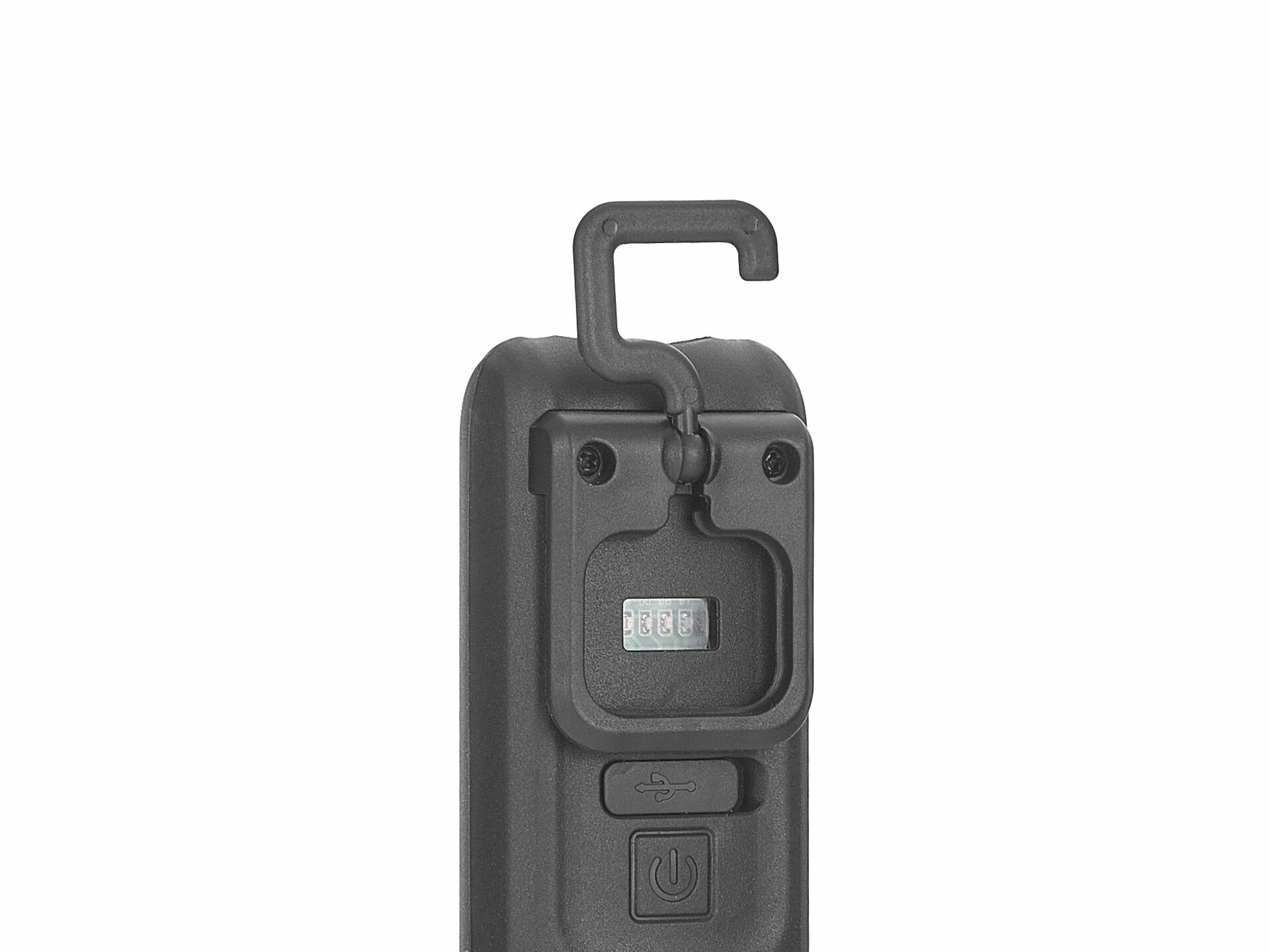 Lampa je připevněna pomocí magnetu, což umožňuje její snadné připevnění na kovové povrchy v okolí pracovního místa. Lampa má navíc praktický háček, který vám umožní ji kdekoli zavěsit.