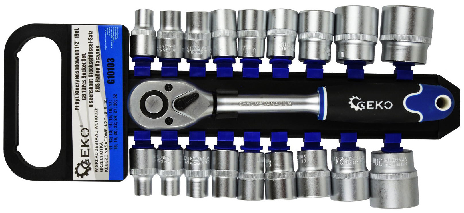 • Nástrčné klíče 1/2" (ořech): 8, 9, 10, 11, 12, 13, 14, 15, 16, 17, 18, 19, 20, 22, 24, 27, 30, 32 mm