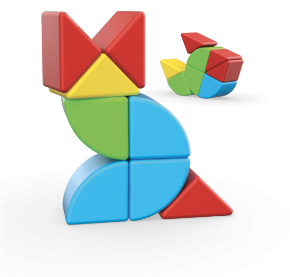 Magnetická stavebnice obsahuje 16 půlkostek a 8 výsečí ve čtyřech barvách. Zkombinujte je s ostatními tvary řady Magicube. Vhodné od 1 roku.