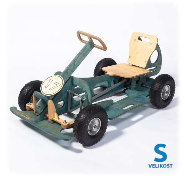 Šlapací autíčko GOCar je zábavnou výzvou jak pro tatínky, kteří si při jeho stavbě umí odpočinout, tak pro ratolesti toužící držet volant, učit se pravidlům provozu i závodění. Základem maximálně ekologické konstrukce vozítka je bezkazová, pevná a odolná březová překližka původem z Lotyšska, která byla důkladně ošetřena voskovým olejem, a odolá tak povětrnostním vlivům. Odolnost vůči nepřízni prostředí také zajišťují díly z nerezové oceli a robustní plastová kluzná ložiska. Šlapací mechanika je přizpůsobena omezenému prostoru a maximální bezpečnosti. Dynamice jízdy prospívají objemná nafukovací pojezdová kola. K zajištění řidičova pohodlí je autíčko vybaveno posuvným opěradlem. Autíčko velikosti S (malé), má nosnost do 50 kg a je určeno pro děti od 3 do 5 let. Hlavní vlastnosti:pro děti od 3 do 5 let, max. 50 kgodolná konstrukceve formě stavebnice
