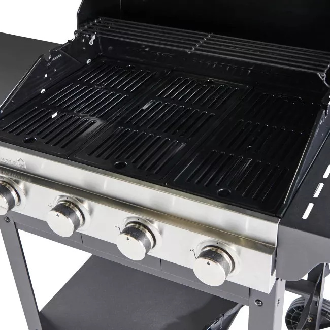 Trubkové hořáky mají výkon 7,2 kW, plně dostačující k u grilování jakéhokoli pokrmu za jakéhokoli počasí. Grilovací rošt z masivní litiny poskytují rovnoměrnější rozvod tepla. Hlavní grilovací prostor je osazen 4 x hořákem se samostatnou regulací.