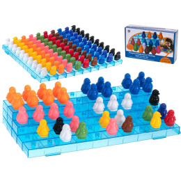 Balení obsahuje 10 plastových ledových kryh (30 x 2,5 cm), 100 plastových tučňáků v 10 barvách.