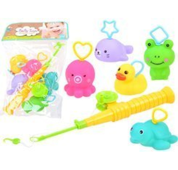 - žluté gumové kachničky s modrým háčkem
