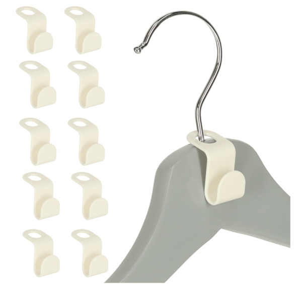 Praktické háčky na ramínka, které vám pomohou uspořádat a udržet pořádek ve skříni nebo šatně. Materiál: plast. Barva: bílá. Množství: 10ks. Délka: 4,5 cm. Šířka: 2 cm. Průměr otvoru pro závěs: 1,5 cm.