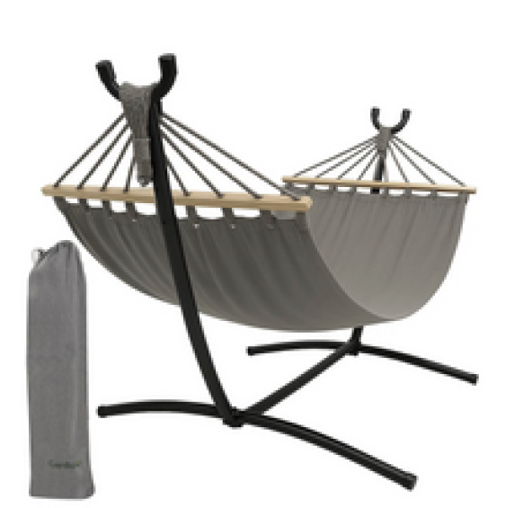 Dvoumístná zahradní houpací síť na rámu XXL s rozpěrnými tyčemi 250 kg!