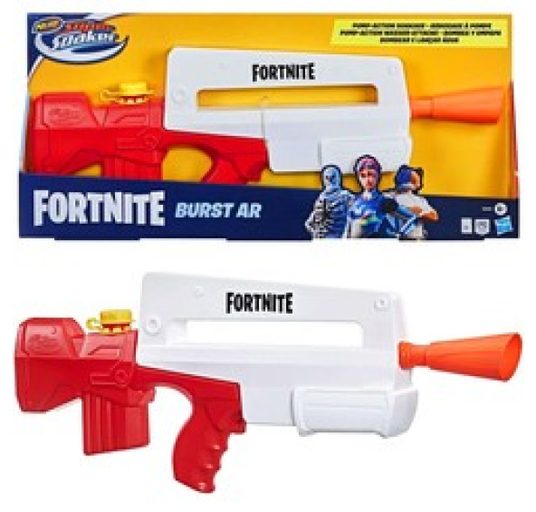 Pistole Nerf Super Soaker Fortnite Burst AR, inspirovaná populární hrou Fortnite, přenáší vzrušení ze hry přímo na vaše bojiště na zahradě, v bazénu.