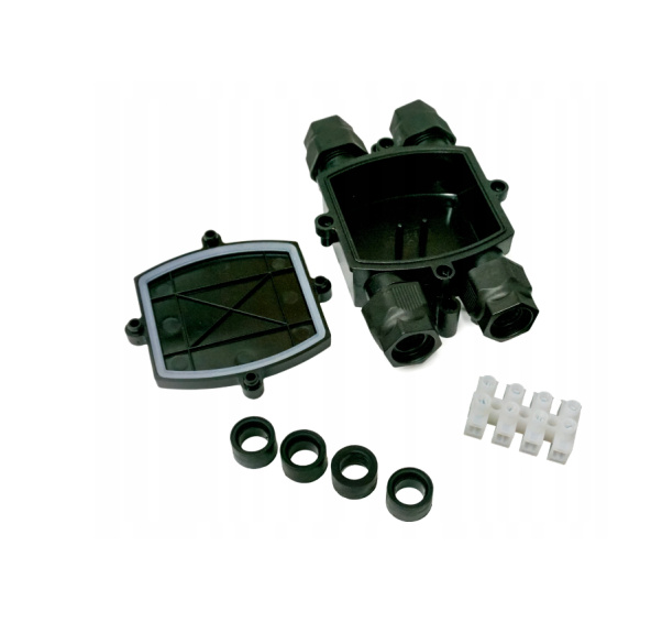 Technické údaje: Montáž - povrchová montáž Obsah sady (svorkovnice) - 4 svorky 2,5mm2 Třída těsnosti - IP68 CE certifikát - ANO Kostka uvnitř - ANO Tlumivky v ceně - ANO