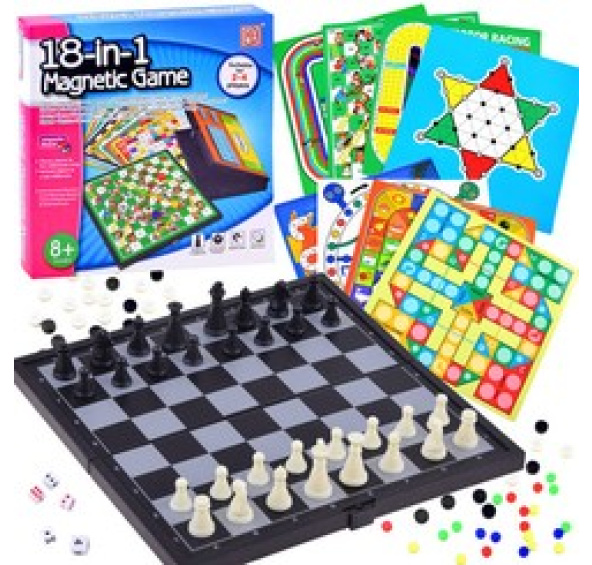 Sada 18 her: Překážkový běh, Devět Morrisových mužů, Všude, Fotbal, Husa, Manji Chess Route, Space - venture, Šachy - vlak, Baseball, Ludo, Šachy, Triktrak, Dáma, Čínská dáma, Hadi a žebříky, Závod, Závod F1