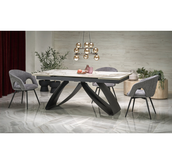 Popis produktu HILARIO stół rozkładany, blat - beżowy marmur, nogi - czarny (3p=1szt)wymiary: 180-260/90/75/125 cm; stół rozkładany, materiał: spiek / stal malowana proszkowo, kolor: blat - beżowy marmur, nogi - czarny