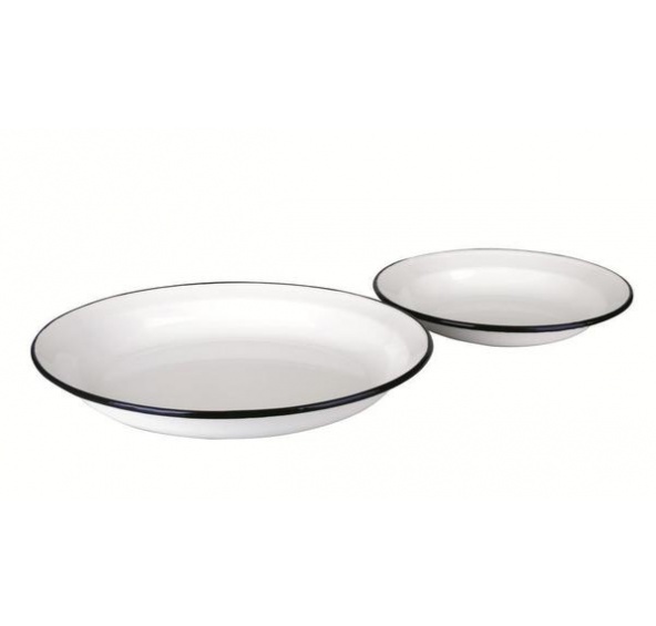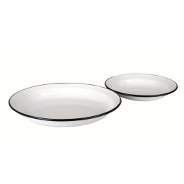 Hluboké talíře klasického tvaru jsou vyrobené z kvalitního smaltu, který zaručuje nejen dlouhou dobu používání, ale také snadnou údržbu - může se mýt i v myčce nádobí. V nabídce jsou i mělké talíře, mísy, tácy a podnosy, džbány a hrnky ze stejného materiálu a ve stejném barevném provedení. Za velmi přijatelnou cenu si z nich můžete sestavit soupravu nádobí na chatu nebo chalupu, ale i do stylové moderní kuchyně.