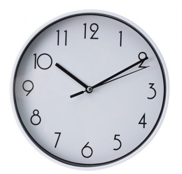 Popis produktu Hodiny nástěnné 30 cm bílé - EXCELLENT- materiál: PP plast- průměr: 30,5 cm- hloubka: 4,4 cm- napájení 1x AA baterie (není součástí)- barva rámu: bílá
