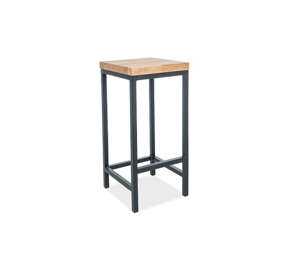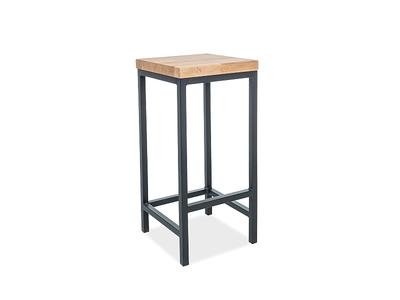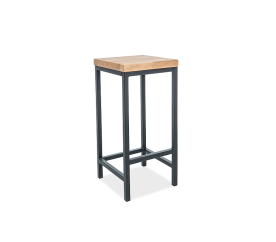 Barová stolička, sedák: masivní dubové dřevo, konstrukce: kov, barva: černá.