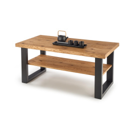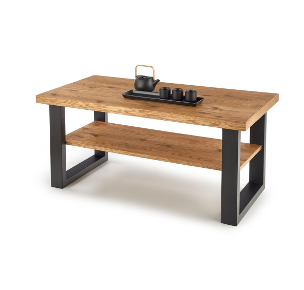 wymiary: 120/60/55 cm, materiał: blat - płyta fornirowana, na obrzeżach drewno lite, nogi - stal malowana proszkowo kolor: blat – jasny dąb, nogi - czarne Uwaga: blat olejowany, wymagający szczególnej konserwacji, szczegóły w instrukcji. Uwaga 2: blaty posiadają sęki, które są wypełnione czarną szpachlą, nie jest to wada produktu a naturalny i celowy wygląd blatu pokrytego fornirem, mający podkreślić rustykalny i wyjątkowy wygląd blatu.