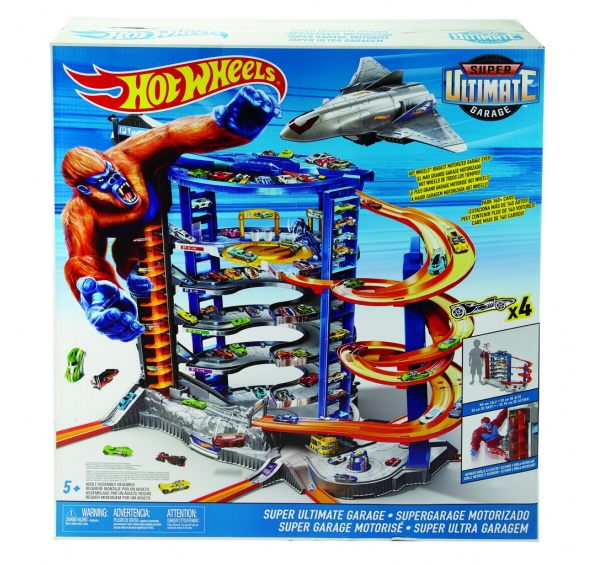 Užij si mnoho zábavy s tímto jedinečným herním setem od Hot Wheels®. Tato ultimátní garáž od Hot Wheels® je tou největší garáží všech dob! Garáž je více než 90 centimetrů vysoká a můžeš do ní zaparkovat více než 140 autíček. Tento jedinečný herní set v sobě navíc ukrývá motorizovaný výtah, ve kterém můžeš přepravit dokonce až 23 autíček najednou, několik různých herních ploch a mnoho dalšího. Jakmile zajedeš všemi autíčky do výtahu, dávej si dobrý pozor na hrozivou gorilu, která umí vyšplhat po věži a jejímž cílem je shodit tvé přátele z výtahu! Tento a mnoho dalších parádních prvků ti zajistí téměř nekonečné možnosti hraní. Součástí ultimátní garáže je i obrovský tryskáč, do kterého můžeš naložit až dvě Hot Wheels® autíčka. Vydej se na vyhlídkový let kolem města a poté jednoduše přistaň na svém vlastním heliportu na střeše garáže. Ihned po přistání můžeš využít parádní dvouproudou závodní dráhu, která začíná na střeše jen kousíček od heliportu. Připrav se na závod ve stylu Hot Wheels®! Nebo se vydej prozkoumat město: objednej si jídlo v podniku s obsluhou až do auta, strč závoďáky pod zámek na policejní stanici, vyjeď na střechu garáže v nákladním výtahu, vylepši své auto v obchodě a po cestě se stav v myčce. Součástí balení jsou čtyři autíčka a tryskáč. V setu najdeš hned několik připojovacích míst, pomocí kterých můžeš připojit ultimátní garáž ke svým dalším herním setům od Hot Wheels® a vytvořit tak svět plný závodních tratí a zábavy.