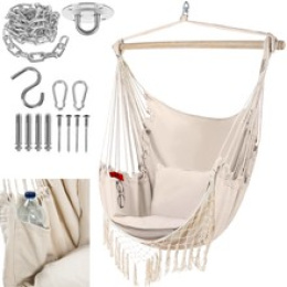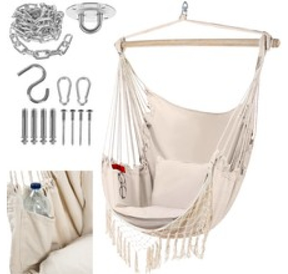 Popis produktu Brazilské závěsné houpací křeslo s kotvící sadou 150 x 120 cm béžové Malatec 18182