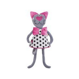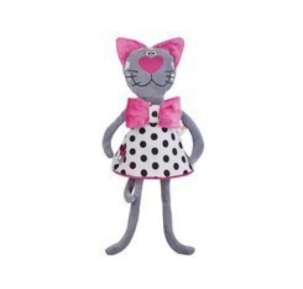 Velurová puntíkovaná kočička má šustící oblečení a oblíbené hrací prvky s našitými visačkami, zatímco měkké nohy a ruce provokují batole k uchopení.