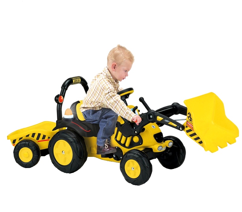 Dětský šlapací traktor EXCAVATOR s valníkem a lžící od španělské firmy Injusa, určený pro děti od 2 let.