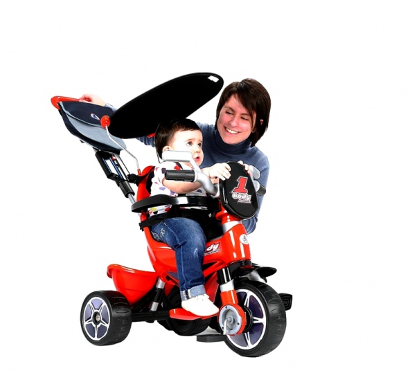 Dětská multifunkční tříkolka BODY Red od španělské firmy Injusa, určená pro děti od 10 měsíců.