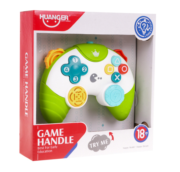 Podložka pod hračky - ovladač pro nejmenší od 18 měsíců. Hračka je vyrobena v živých barvách, které přitahují dětské oči, a veselé zvuky podporují hru. Na horní straně podložky se nachází kolečko a půlměsíc pro otáčení a vydávání zvuků cvakání. Na přední straně ovladače jsou na levé straně umístěna čísla 1 až 4, která po stisknutí vydávají legrační zvuky. Vlevo dole se nachází žluté tlačítko s reproduktorem. Na pravé straně ovladače jsou tlačítka s kruhem, křížem, čtvercem a trojúhelníkem, která po stisknutí přehrávají různé melodie. Vpravo dole na podložce je modré tlačítko s bleskem, které vydává zvuk nástrojů. Zvukové efekty v hračce jsou doprovázeny světelnými efekty. Po stisknutí některého z tlačítek se rozsvítí kresba umístěná uprostřed hračky. Hračka je napájena 2 bateriemi AAA 1,5 V, které jsou součástí balení.