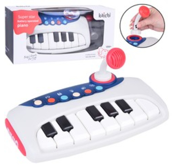 Dítě při stisknutí kláves/tlačítek na piánku uslyší zvuky a melodie. Dodatečně má mikrofon, do kterého lze zpívat.