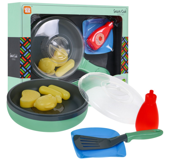 Interaktivní pánev s funkcí smažení je vhodná pro děti od 3 let. Hračka má zvukové a světelné efekty. Při "smažení" na pánvi jsou slyšet zvuky smažení a jídlo mění barvu. Uprostřed pánve svítí tři nemodré diody LED, které jsou zodpovědné za ohřev fiktivních výrobků. Jakmile jsou výrobky "usmažené", pánev se vypne. Hračka je napájena 2 bateriemi AAA 1,5 V (nejsou součástí dodávky)