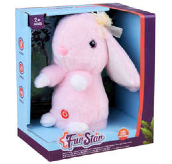 Rozkošný plyšový králíček poskytne spoustu zábavy malým i velkým dětem. Hračka má funkci nahrávání, takže bude opakovat všechna slova, která jí řeknete, a to v jakémkoli jazyce! Také jí rozhodně nesmíte prozradit žádné tajemství, protože by vám to hned vrátila! Plyšová hračka pobaví i ty největší pesimisty. Opakuje všechna slova, která slyší, a má možnost zábavné hudby.