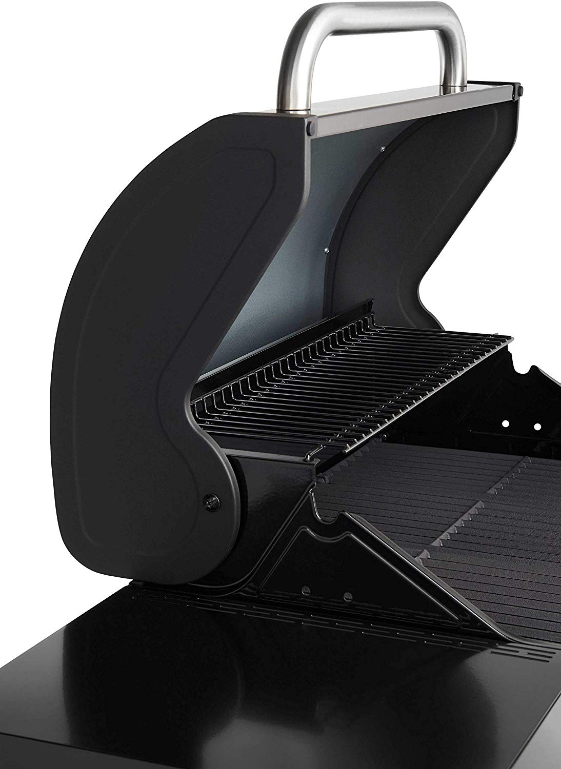 Velice praktický je odkládací rošt, kde můžete udržovat již hotové pokrmy stále teplé a připravené ke konzumaci. Gril je osazen praktickým sklopným víkem se zabudovaným teploměrem