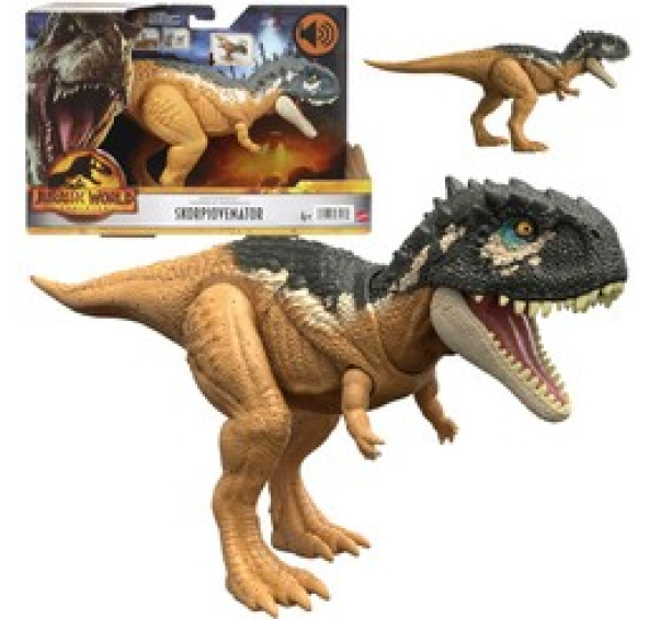 Dinosaurus Scorpiovenator z filmu Jurský svět Dominion od společnosti Mattel je skutečnou lahůdkou pro fanoušky filmu, sběratele a milovníky prehistorických plazů. Díky detailnímu zpracování, zajímavé textuře imitující dinosauří kůži, realistickým barvám a důrazu na detail vypadá hrozivý Scorpiovenator opravdu fantasticky.dinosaurus má pohyblivé končetiny, po stisknutí trupu vydává hrozivé zvuky, pohybuje ocasem a hlavou a hrozivě cvaká tlamou, což činí hraní ještě zajímavějším.díky pohyblivým prvkům lze přehrávat nezapomenutelné filmové scény nebo hračku pěkně vystavit na poličce.