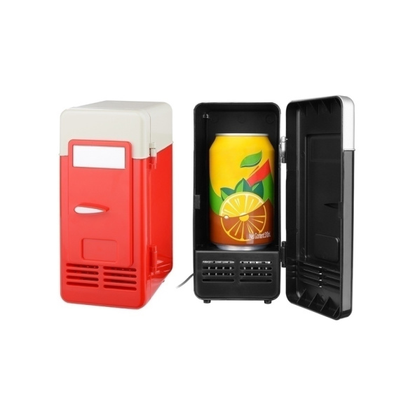 Lednice s funkcí ohřevu. Přepínač umožňuje zvolit režim chlazení nebo vytápění. Zařízení napájené z portu USB. Objem - 0,33 l. Specifikace: - napájení z USB portu – nevyžaduje baterie - ohřev nebo chlazení - 1 ventilátor - místo na jednu plechovku 0,33 l - kompatibilní se všemi operačními systémy V balení: - USB lednička - uživatelská příručka - originální balení