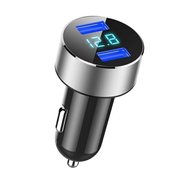 Univerzální kompaktní USB nabíječka do auta s LED podsvícením a voltmetrem. Zařízení má vestavěnou pojistku pro zajištění ochrany proti přepětí. Displej s voltmetrem umožní sledování napětí akumulátoru v reálném čase. Technická specifikace: - 2 USB nabíjecí porty - LED podsvícení - materiál: hliník / ABS - napájení: automobilová zásuvka zapalovače 12/24V - nabíjecí proud: 5V 4.8A (max) - výkon: 24W - rozměry: délka. 6 cm, prům. 3,5 cm Počet ks. v kartonu: 200