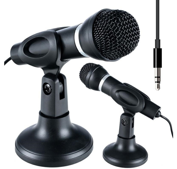 Kondenzátorový mikrofon na stativu. Mikrofon vyrobený z nejkvalitnějších materiálů je ideální pro vedení rozhovorů, komunikaci v online hrách, nahrávání vokálů atd. Stativ lze demontovat a držet mikrofon v ruce. Specifikace: -typ konektoru: minijack 3,5mm -směrovost: všesměrový -typ převodníku: kondenzátorový -frekvenční rozsah: 40Hz-16kHz -citlivost: -52+/-3dB -praktický stativ s nastavitelným sklonem -délka. kabel: 1,5m -vypínač zabudovaný v mikrofonu -rozměry mikrofonu bez stativu: 140x40x40mm
