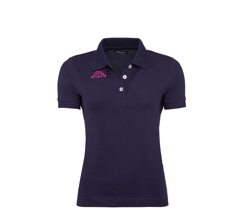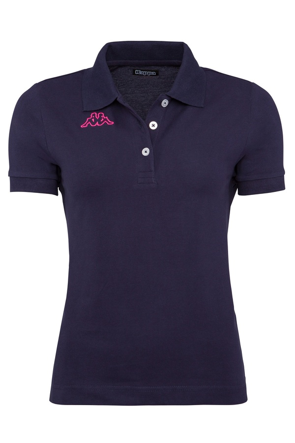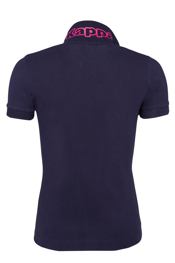 Dámské polo tričko Kappa má vyšité logo na přední straně a nápis Kappa na zadní straně límce.