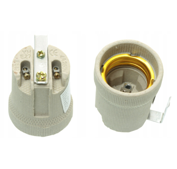 - Keramická patice se používá k instalaci světelných zdrojů, které se používají pro žárovky s paticí E27.