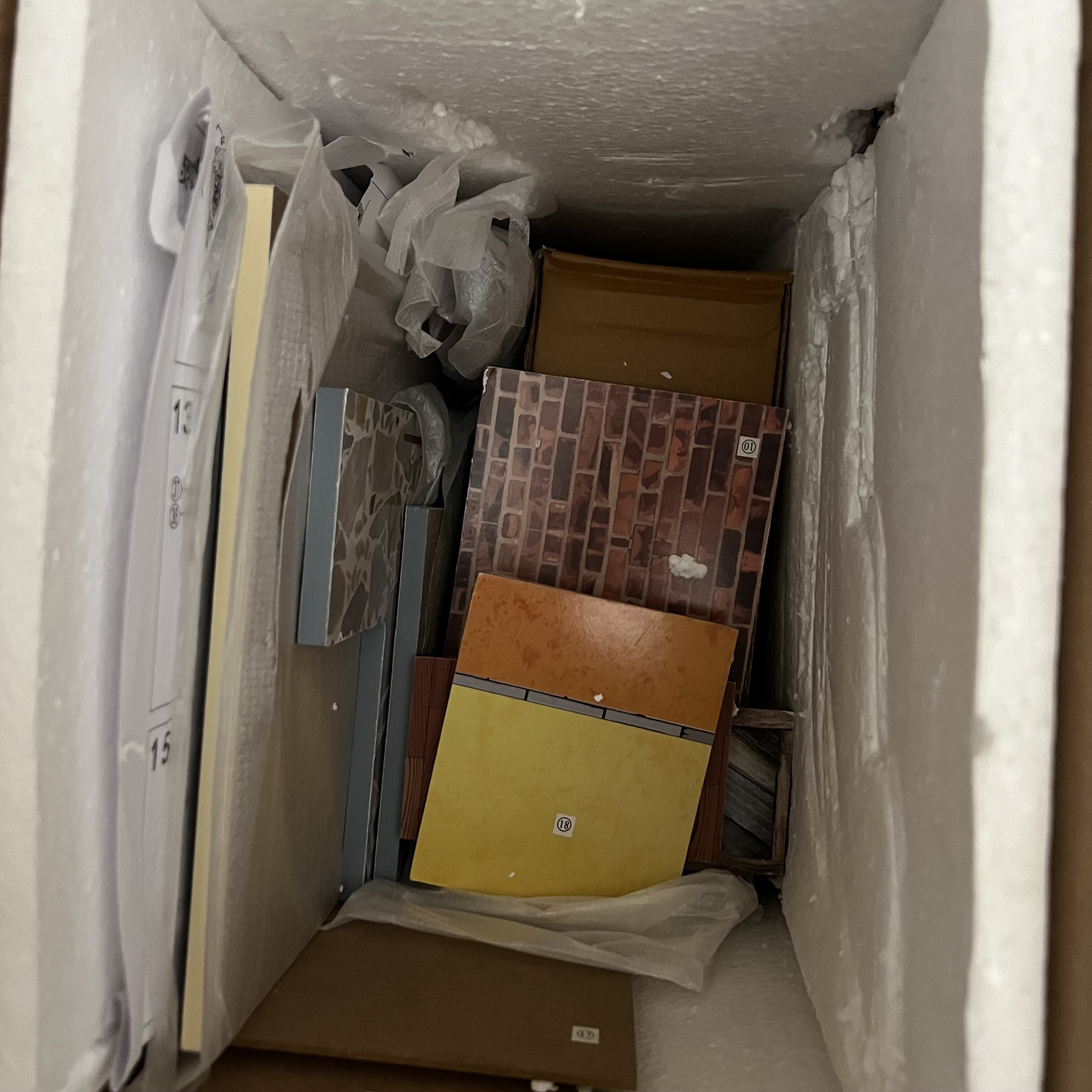 Rohy a hrany prvků při přepravě lehce poškozené, poškozený obal.